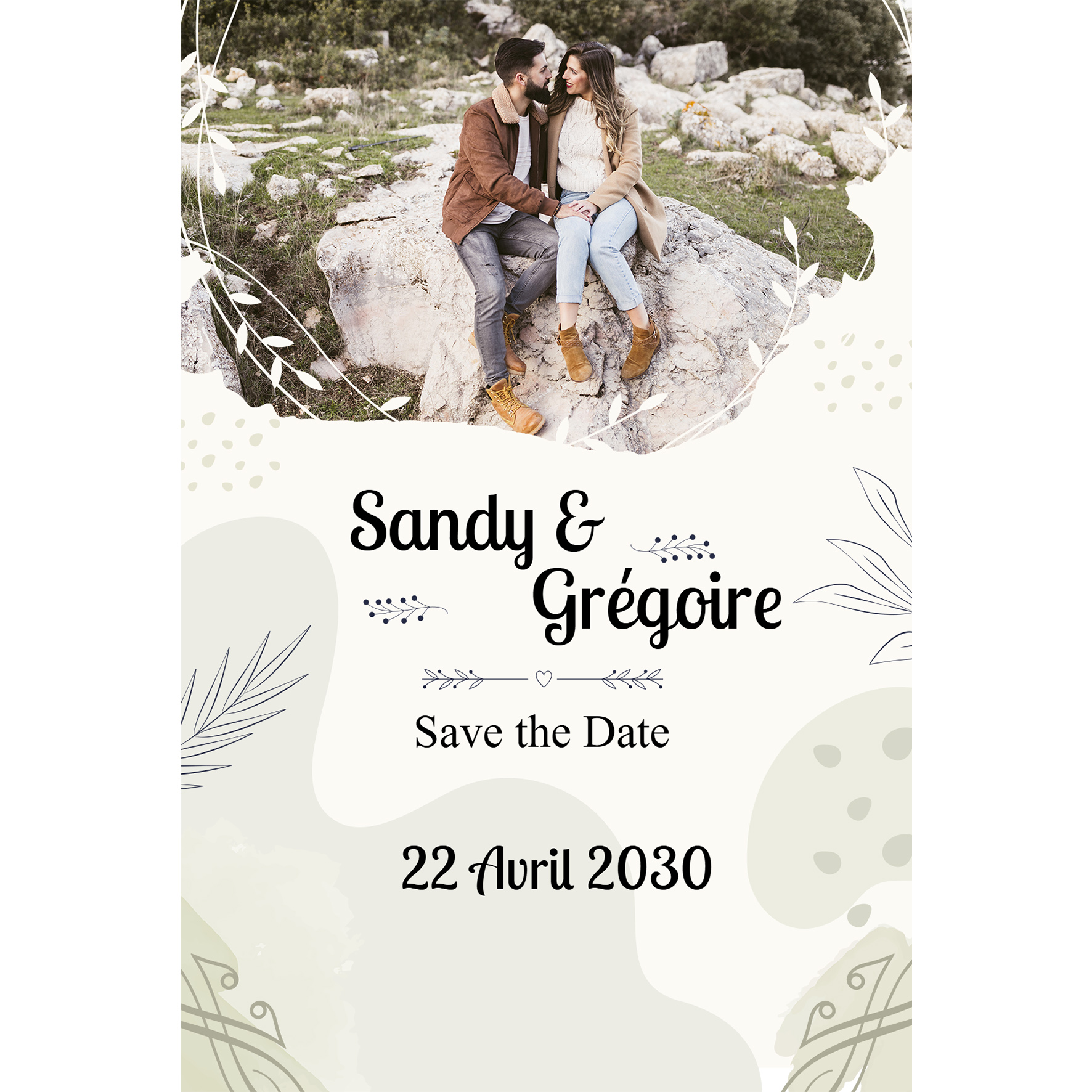 Faites souffler un vent de nature sur votre annonce de mariage avec le Save the Date “Un jour unique”.